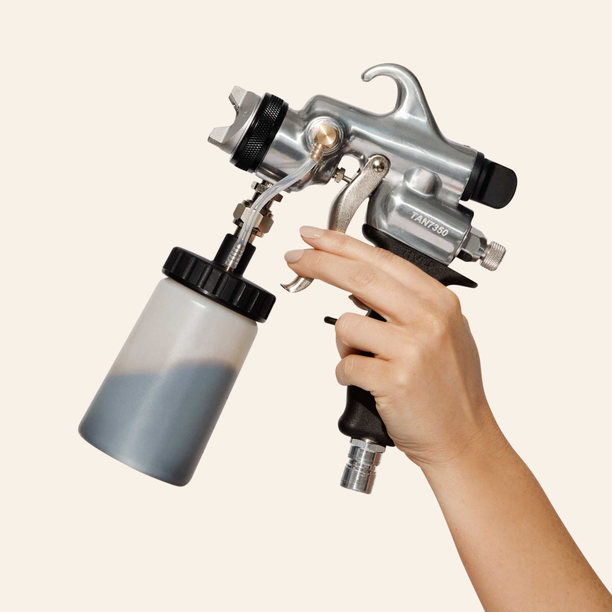 The studioTAN™ turbine is powered by a two-stage motor specially balanced for the spray tanning industry. It includes a TAN3750 applicator with a 250 cc cup (holds 8 ounces of solution), a lightweight 10 foot hose with quick connect, a convenient applicator holder on the turbine, an operator's manual, wrench and cleaning brush . This turbine will meet all your needs for long spray tan sessions or small touch-up sessions. This machine allows you to spray with confidence and focus on the success of your business. It has a pattern control knob located on the back just above the fluid knob. This allows you to easily change the fan pattern from wide to narrow.