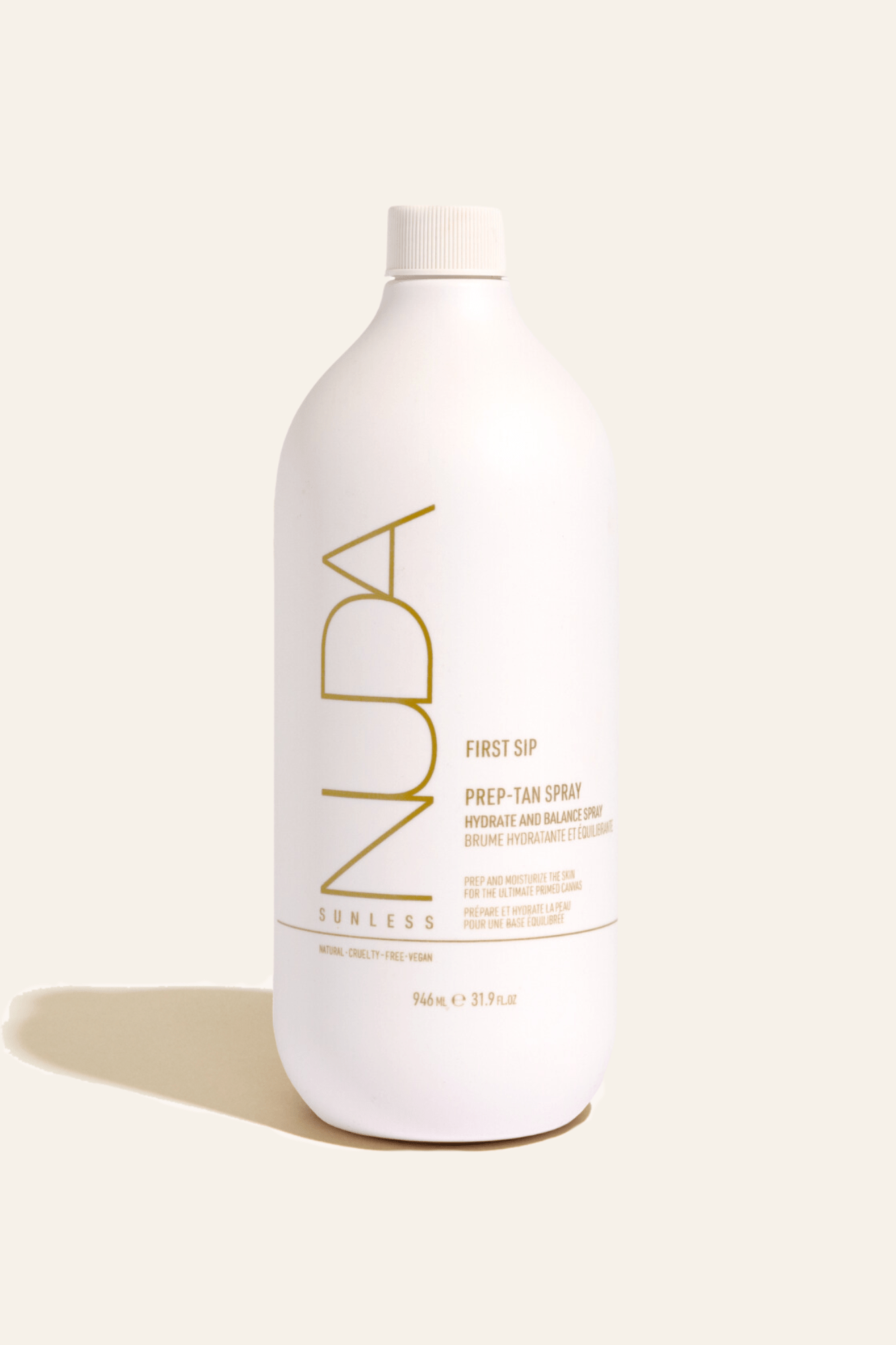 The perfect foundation for your spray tan. First Sip is a refreshing prep spray that primes and perfects skin for a flawless application and longer-lasting glow. This advanced formula balances, hydrates, and cleanses, creating the ideal canvas for an even, streak-free tan.