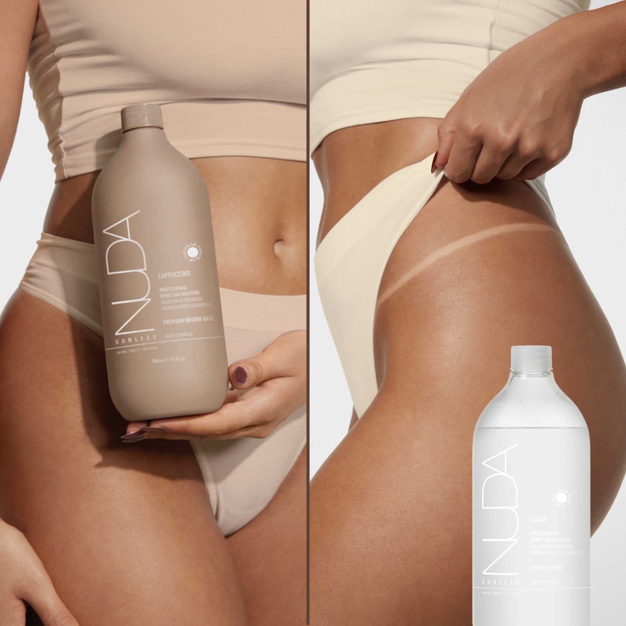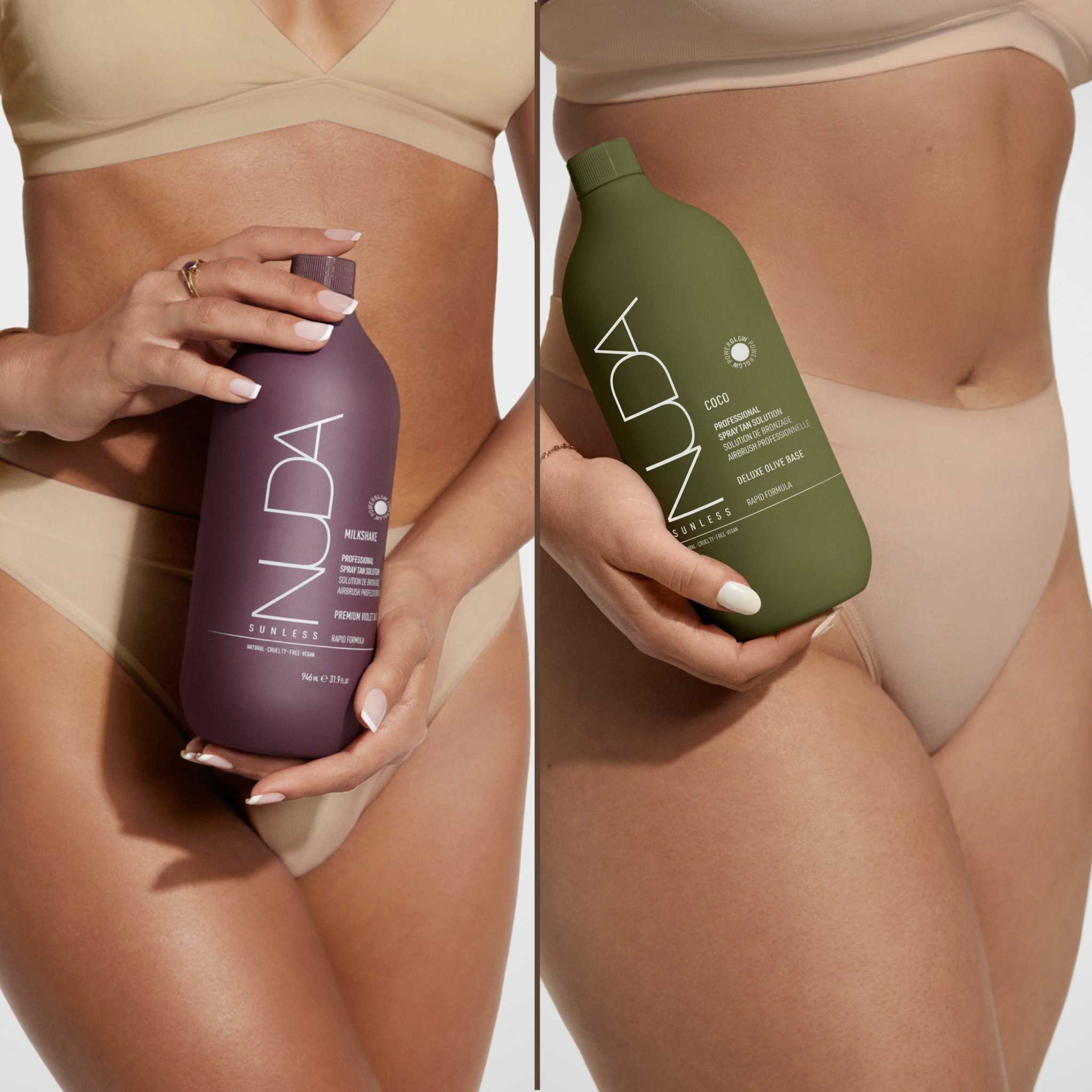 Enjoy all 6 of Nuda’s premium rapid spray solutions ranging from 15% - 16% DHA. Designed for all skin tones.