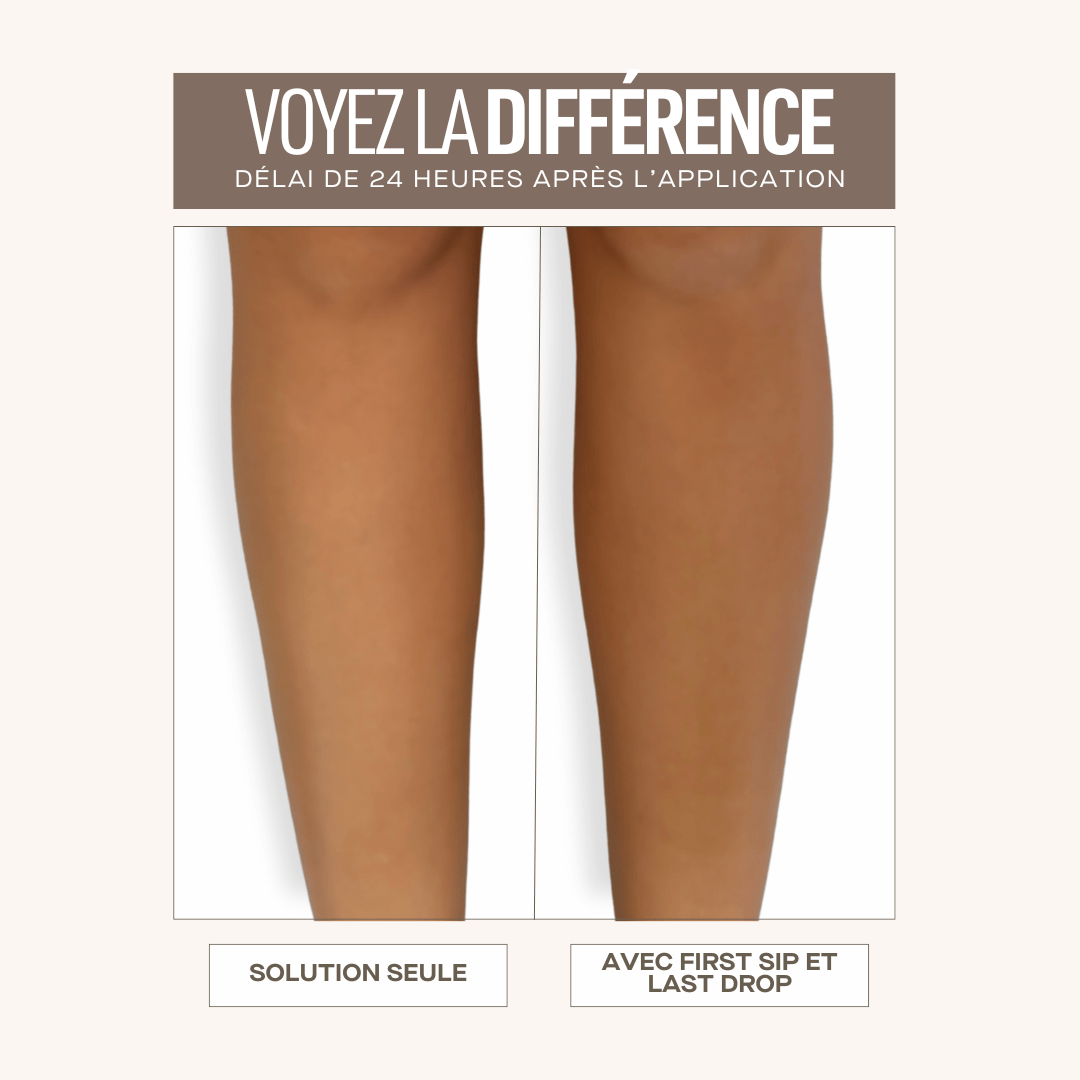 Prêt à améliorer votre routine de spray tan ? Essayez First Sip - Brume hydratante et équilibrante et Last Drop - Brume de finition aujourd'hui, et offrez à vos clients le bronzage luxueux et parfait qu'ils méritent.